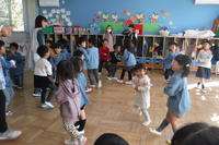 「今日も発表会ごっこやる?」と意欲的に練習に取り組む姿がみられたり、違うクラスの踊りまで覚えている子がいたりと、一人一人が楽しみながら練習に取り組んでいます。