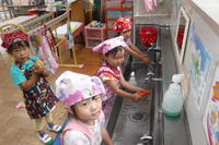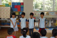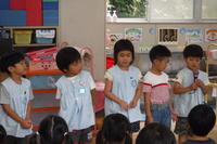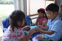 「暑い!!」と言っている年少児に保冷剤を貸してあげる年中児の姿を見て、心が温かくなりました