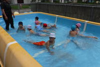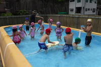 久しぶりの晴れ間の中、子供たちはプール遊びを楽しみました