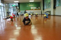 今日も全園児が遊戯室に集まり、体を動かして遊びました