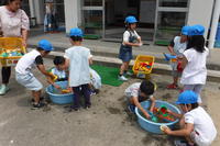 もうすぐ夏休み!ということで、年長組の子供たちが毎日使っている砂場道具をきれい洗ってくれました