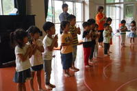 雨天のため、遊戯室となりましたが、子供たちは上手に踊ることができました