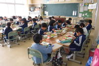 一年生と一緒に給食を食べました