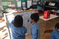 「年賀状ってなに?」「どんなことを書いたらよいかな?」そんなことを子供たちと話し合いながら、年中・年長児クラスの子供たちは年賀状を書いていました