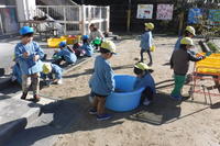 砂場道具をきれいにしたり、保育室を掃除したりしました