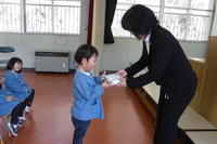 各クラスの代表のお友達が、園長先生からお年玉(こま)をもらいました