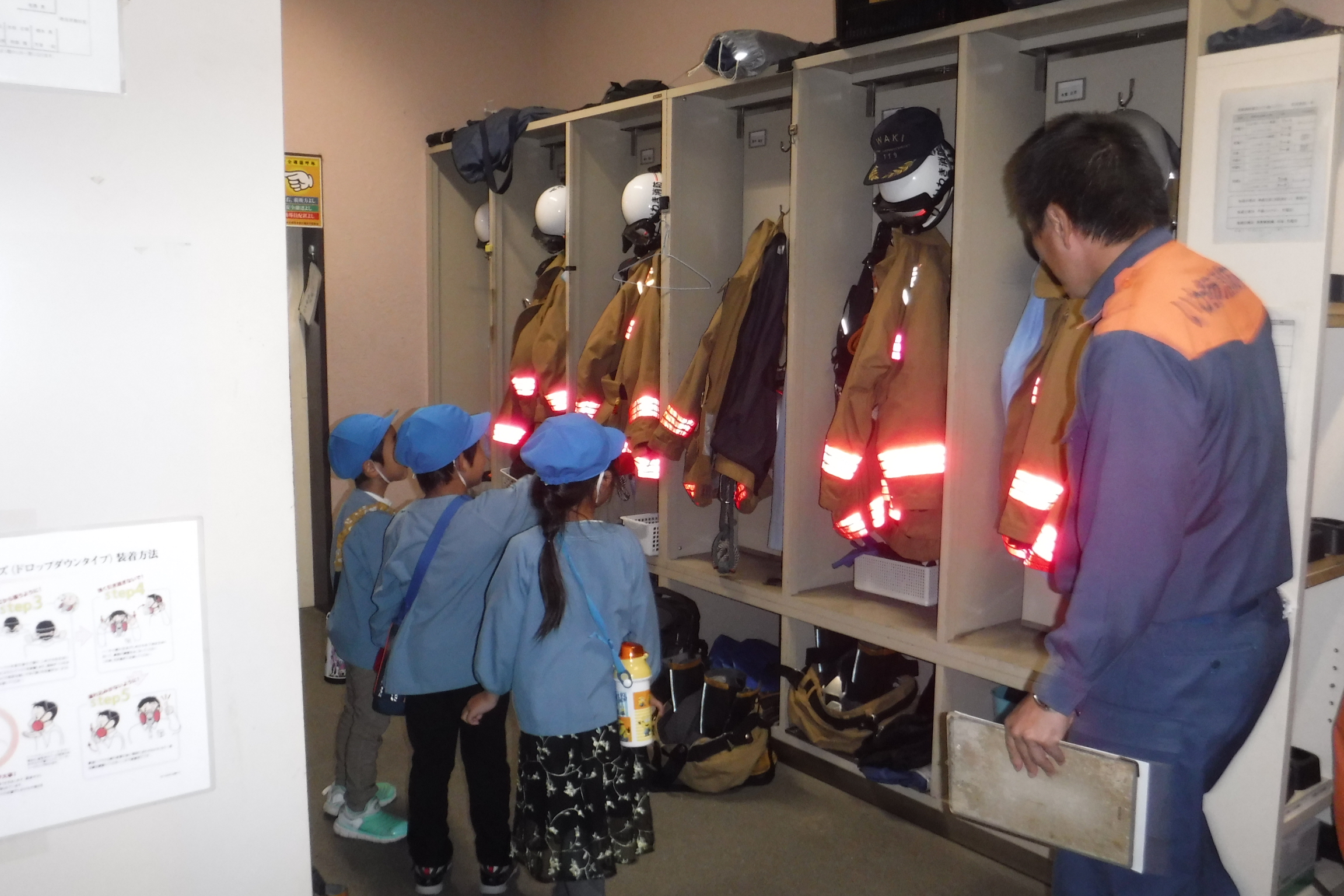 消防署では、施設を見学させていただいたり、子供たちの疑問・質問に答えてもらったりしました