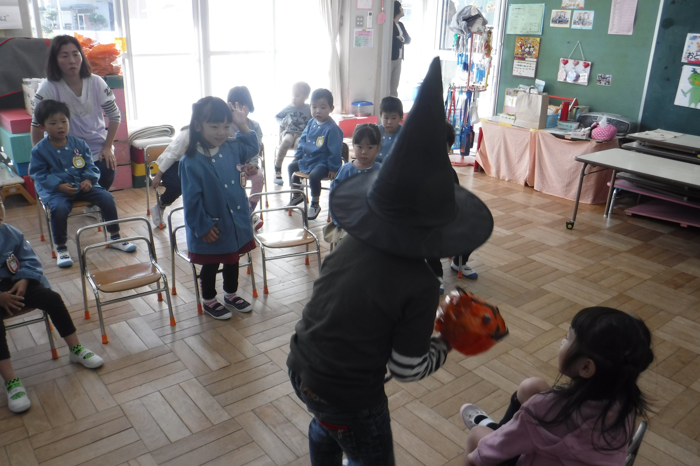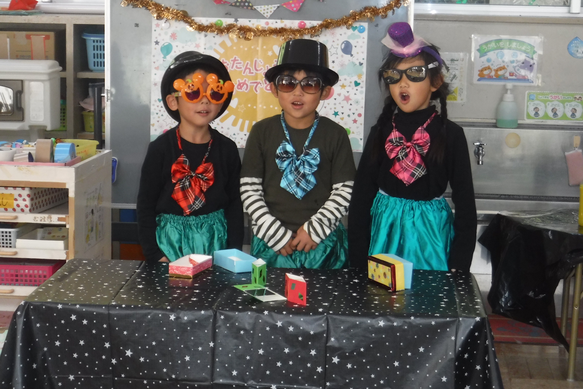 本日の司会は、魔法使いに変身した、3人の年長児です