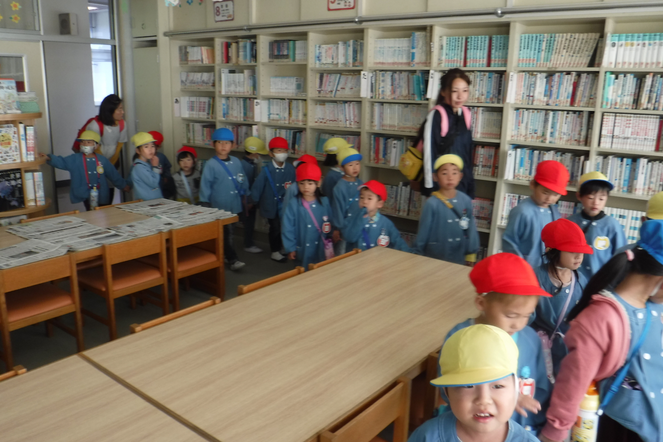 たくさんの本に驚いたり、大好きなお化けの本を見つけたり、普段見ることのできない教室を見ることができて、とても嬉しそうな様子でした