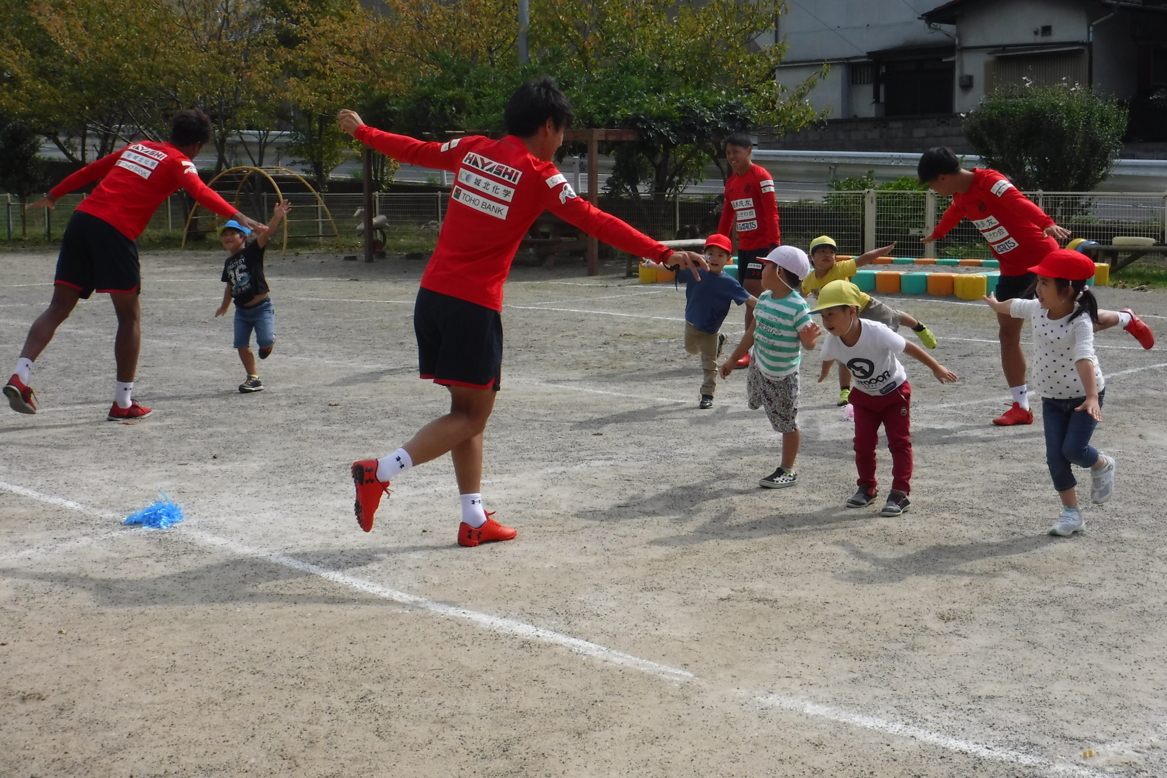いわきFCの選手4名と一緒に、体を動かして遊びました