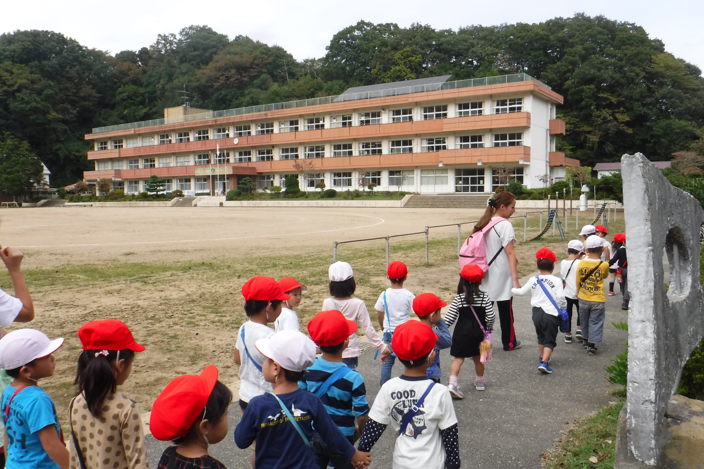 昨日は、園周辺を散策し、今日は湯本第三小学校まで行ってきました