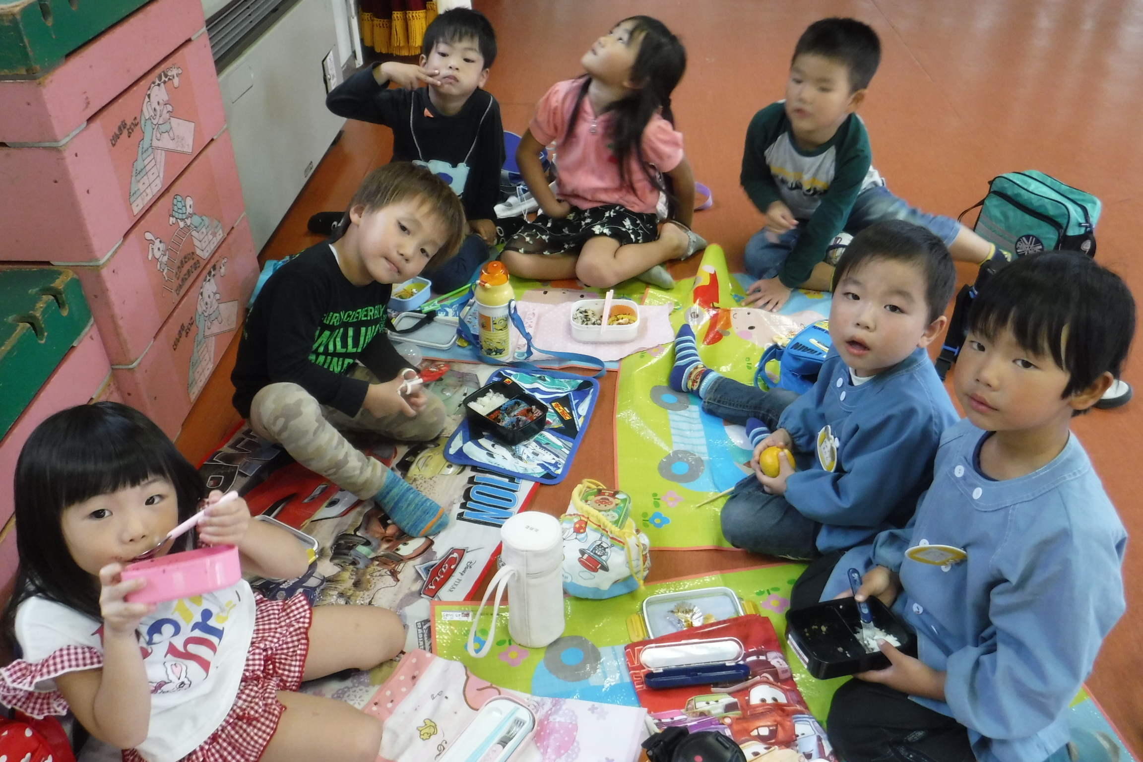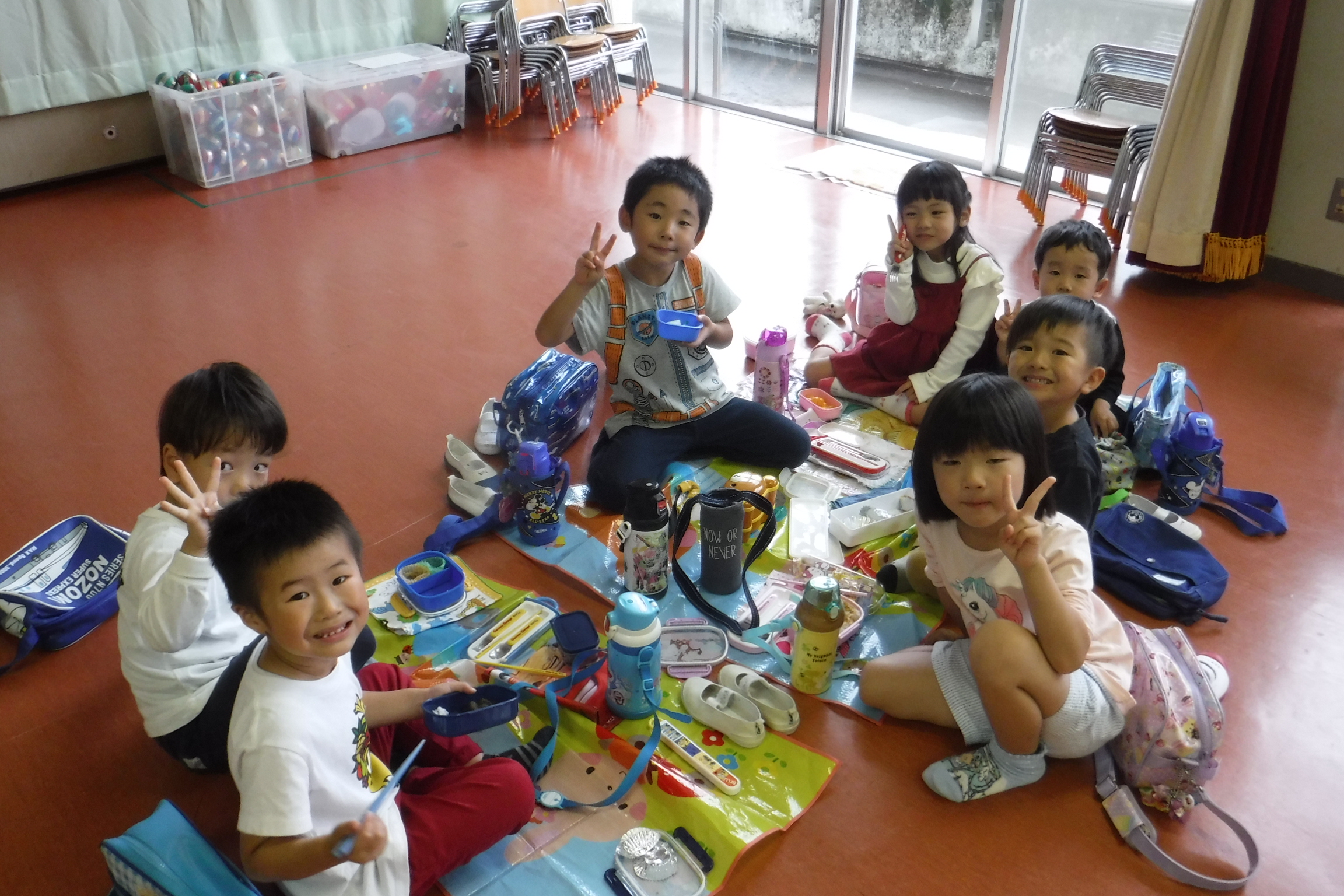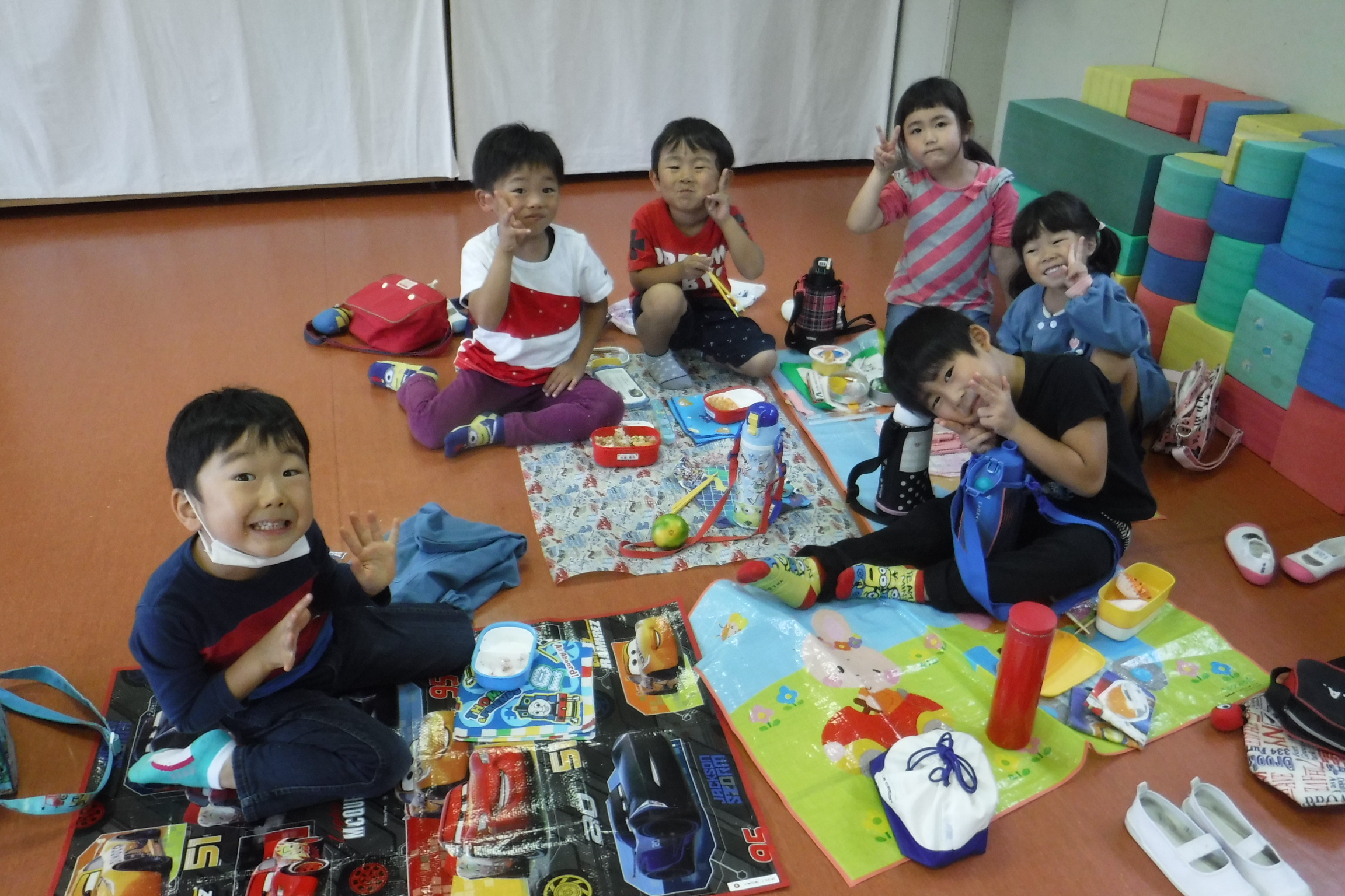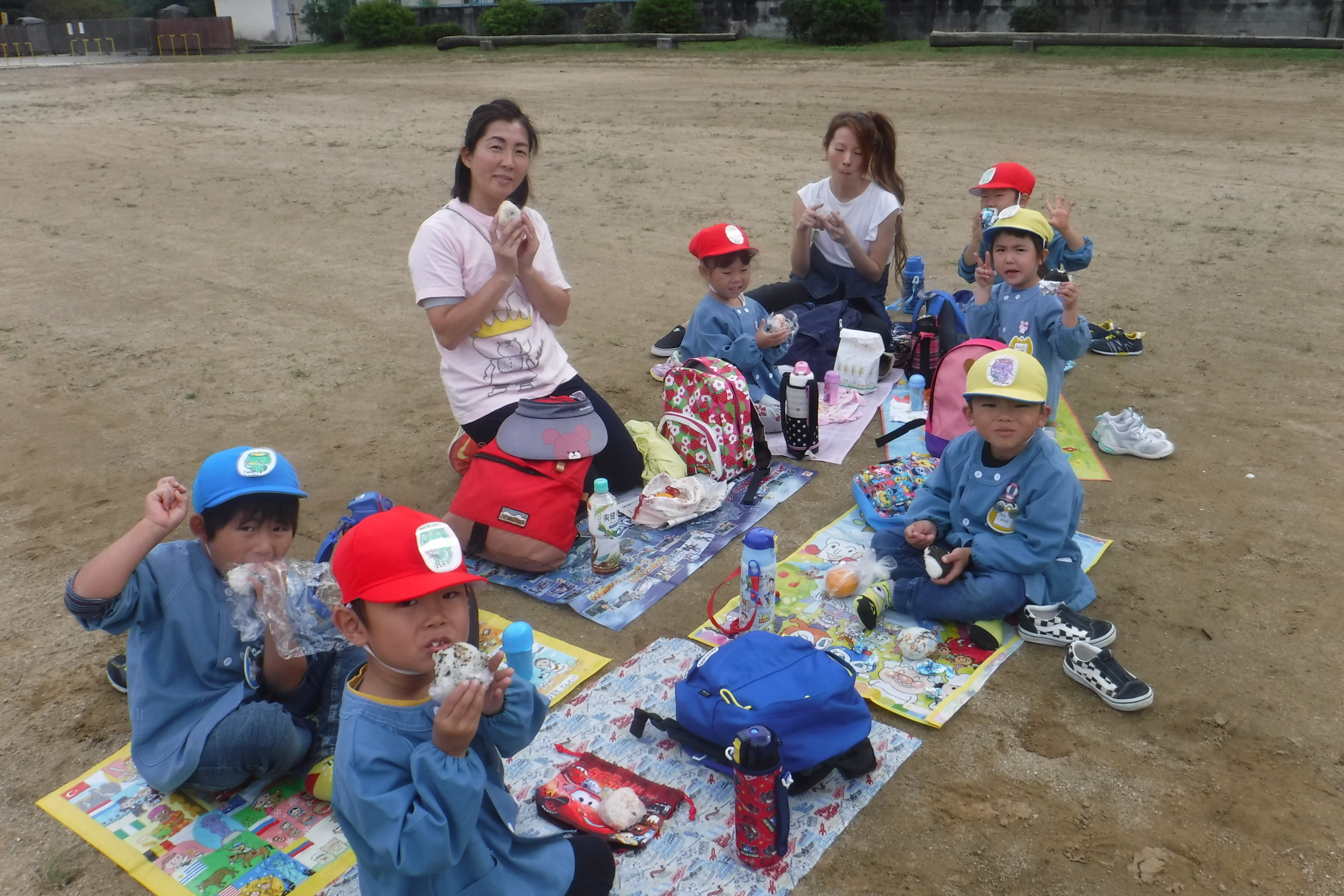 秋の遠足に向けて、お散歩に出掛けたり、シートを使ってグループでご飯を食べたりする時間を設けています