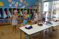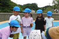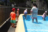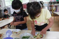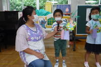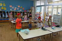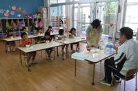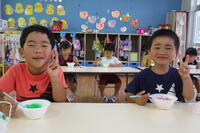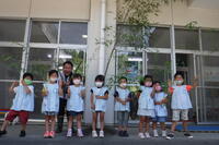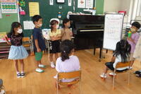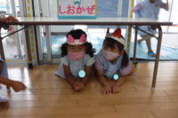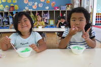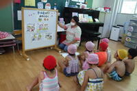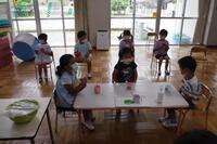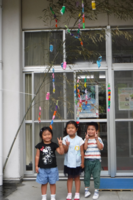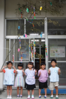 お集まりには、手遊びや園児が「七夕さま、アイスクリーム」の歌を披露しました。
