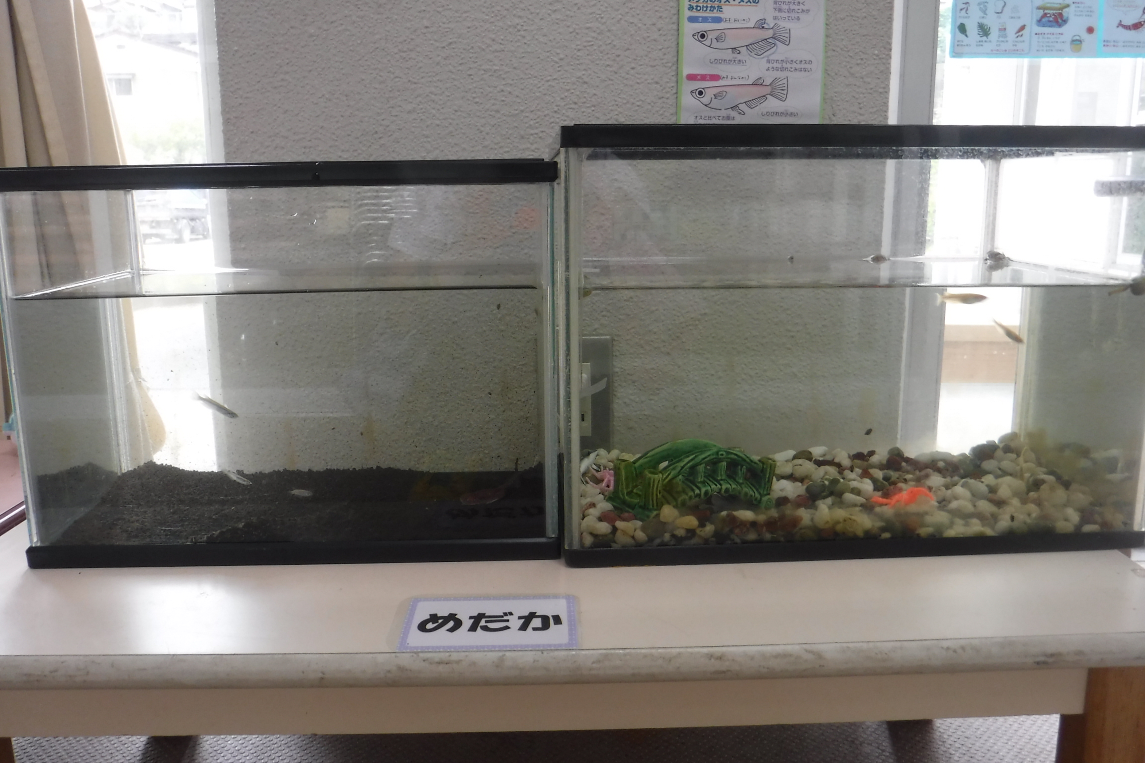 暑い日が続いた今年の夏休みですが、幼稚園のメダカたちは元気に泳いでいます