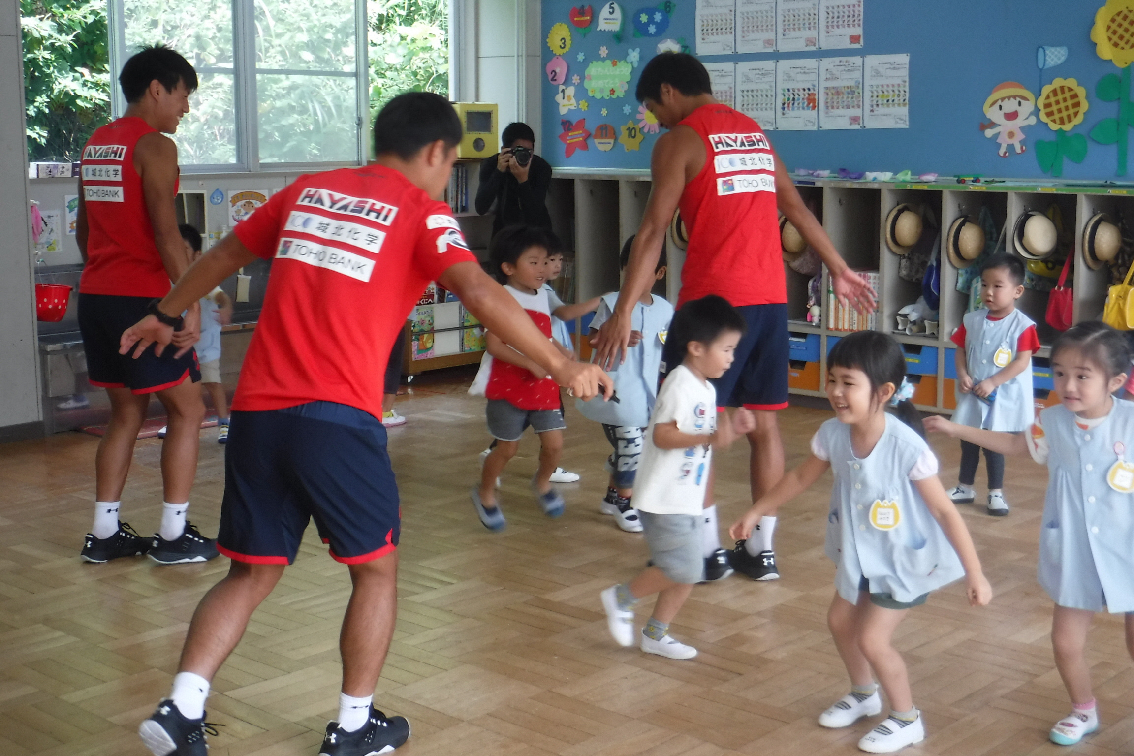 3名の選手と一緒に、たくさん体を動かして遊びました