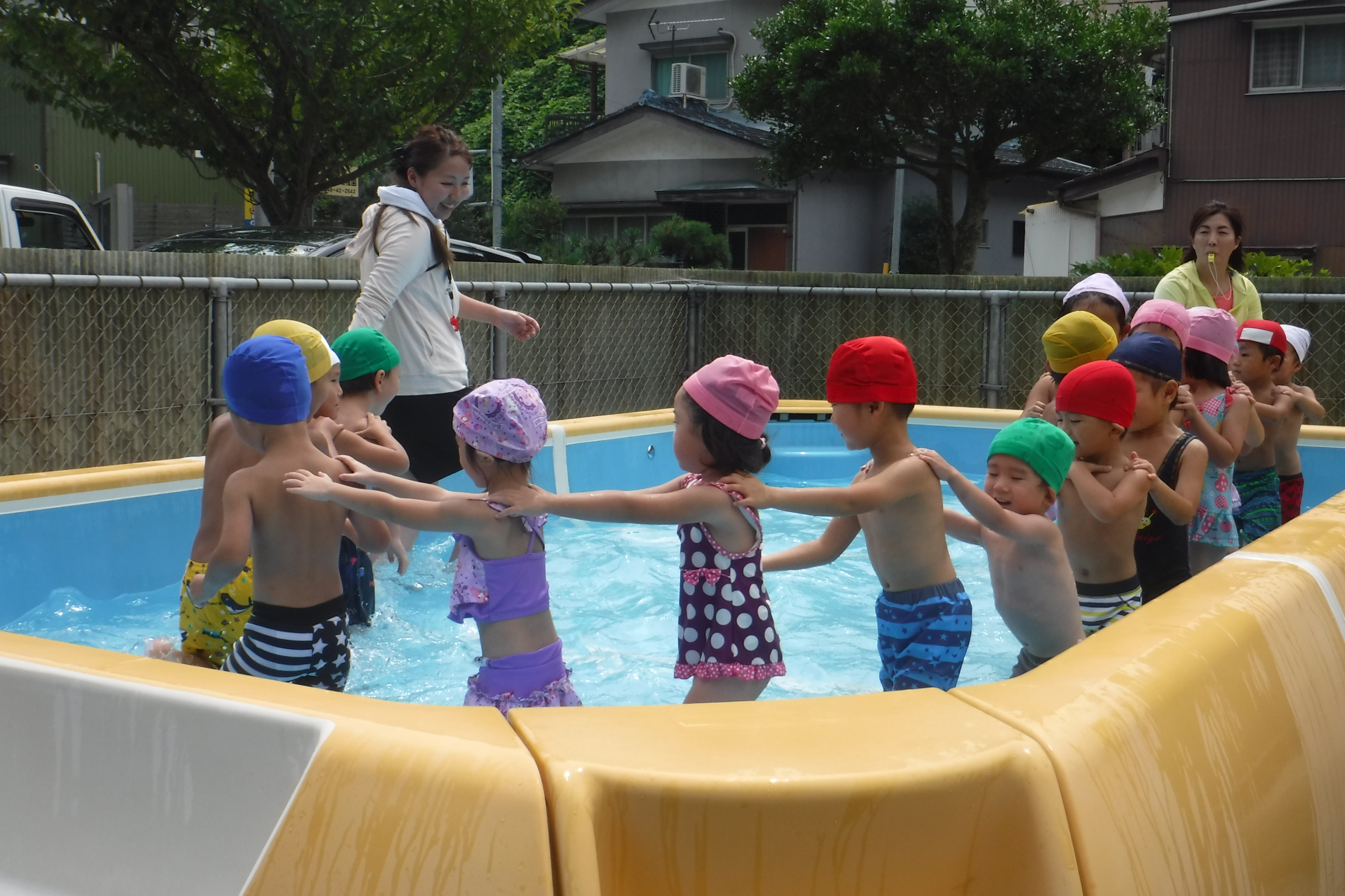 水を怖がらずに笑顔で遊べるようになった子、水に顔をつけられるようになった子、上手にワニ歩きができるようになった子…それぞれの成長した姿が見られました