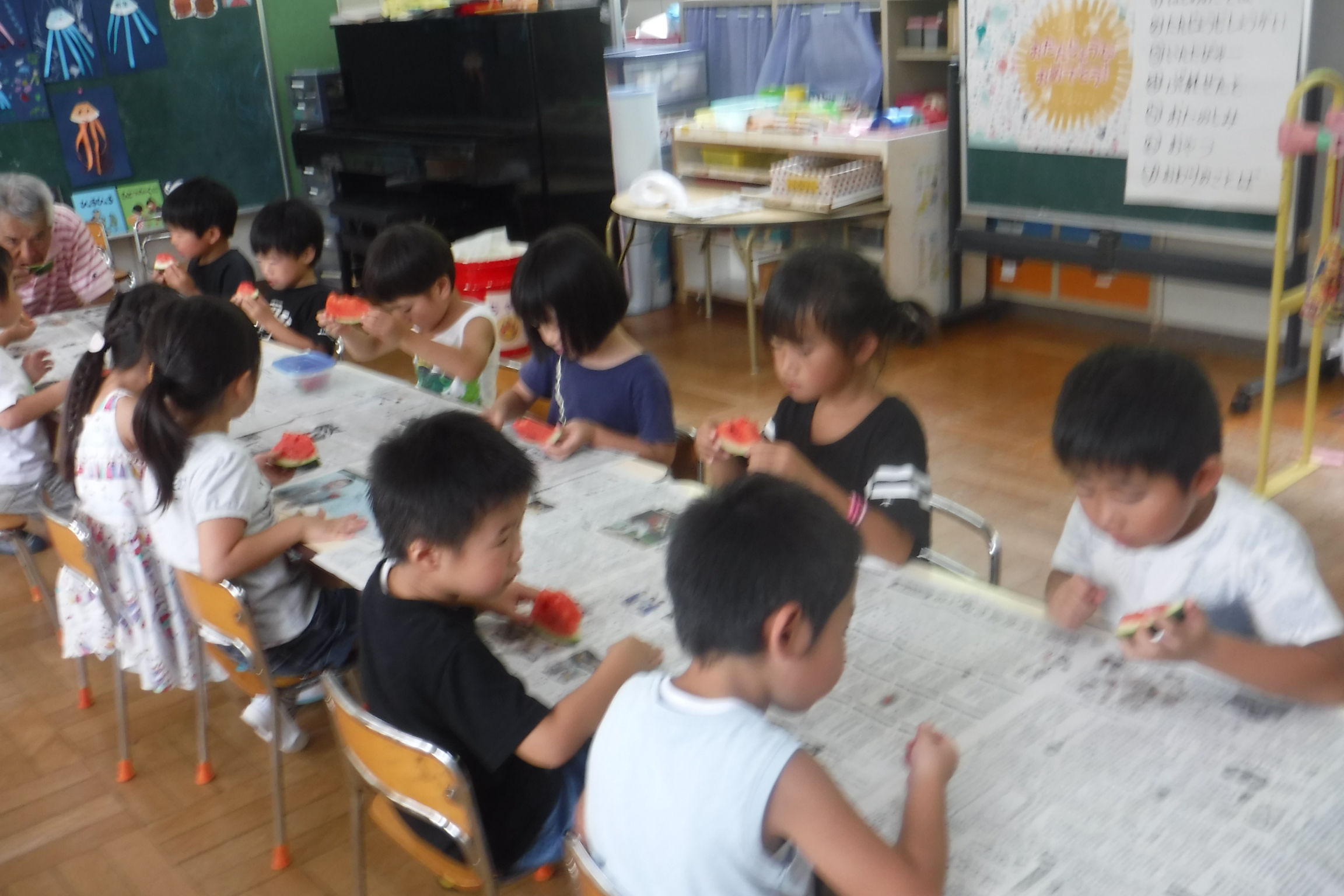 みんなで食べたスイカはとってもおいしかったね