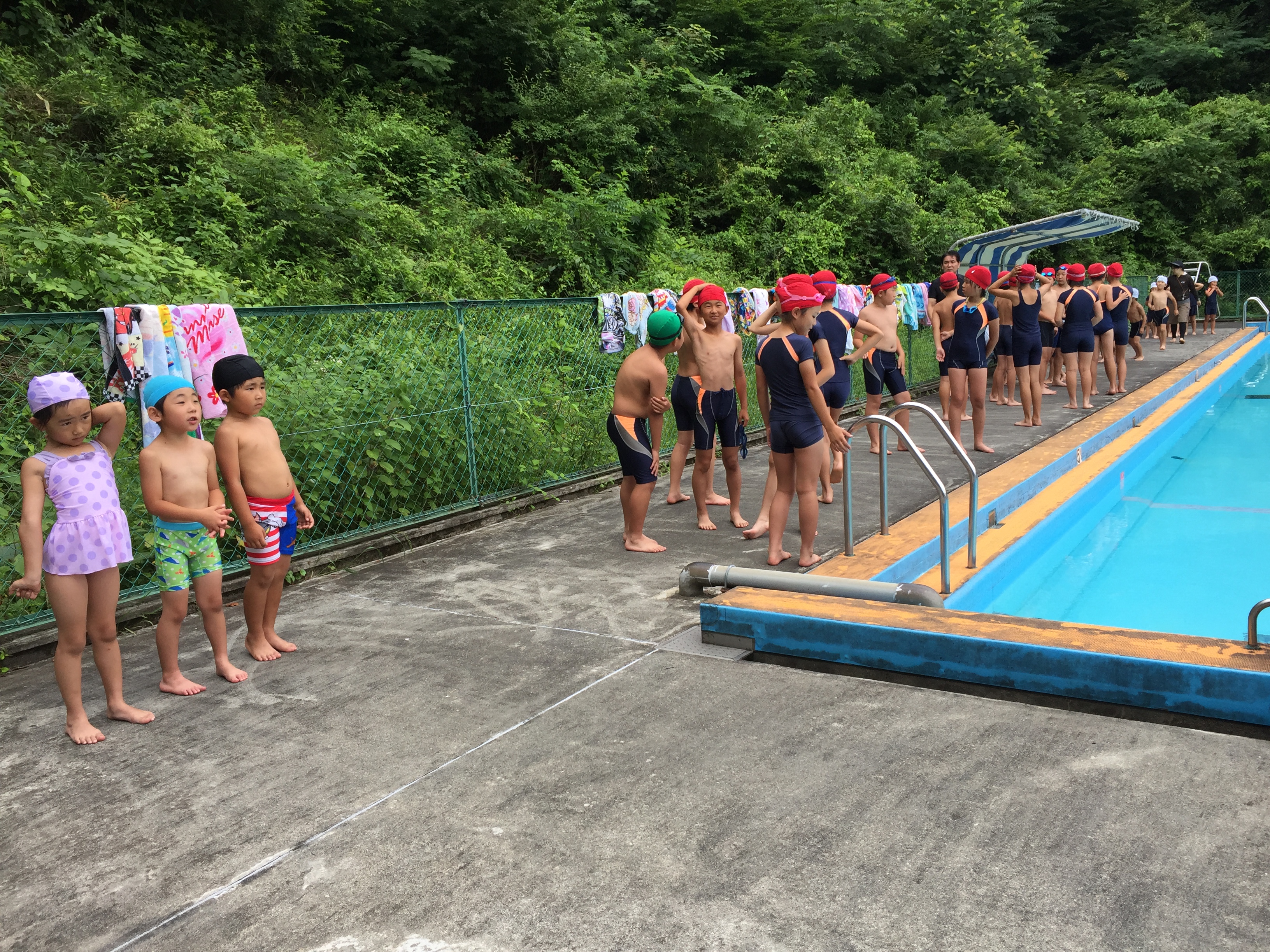 今日は、年長組と湯本第三小学校の一年生&五年生のプール交流がありました