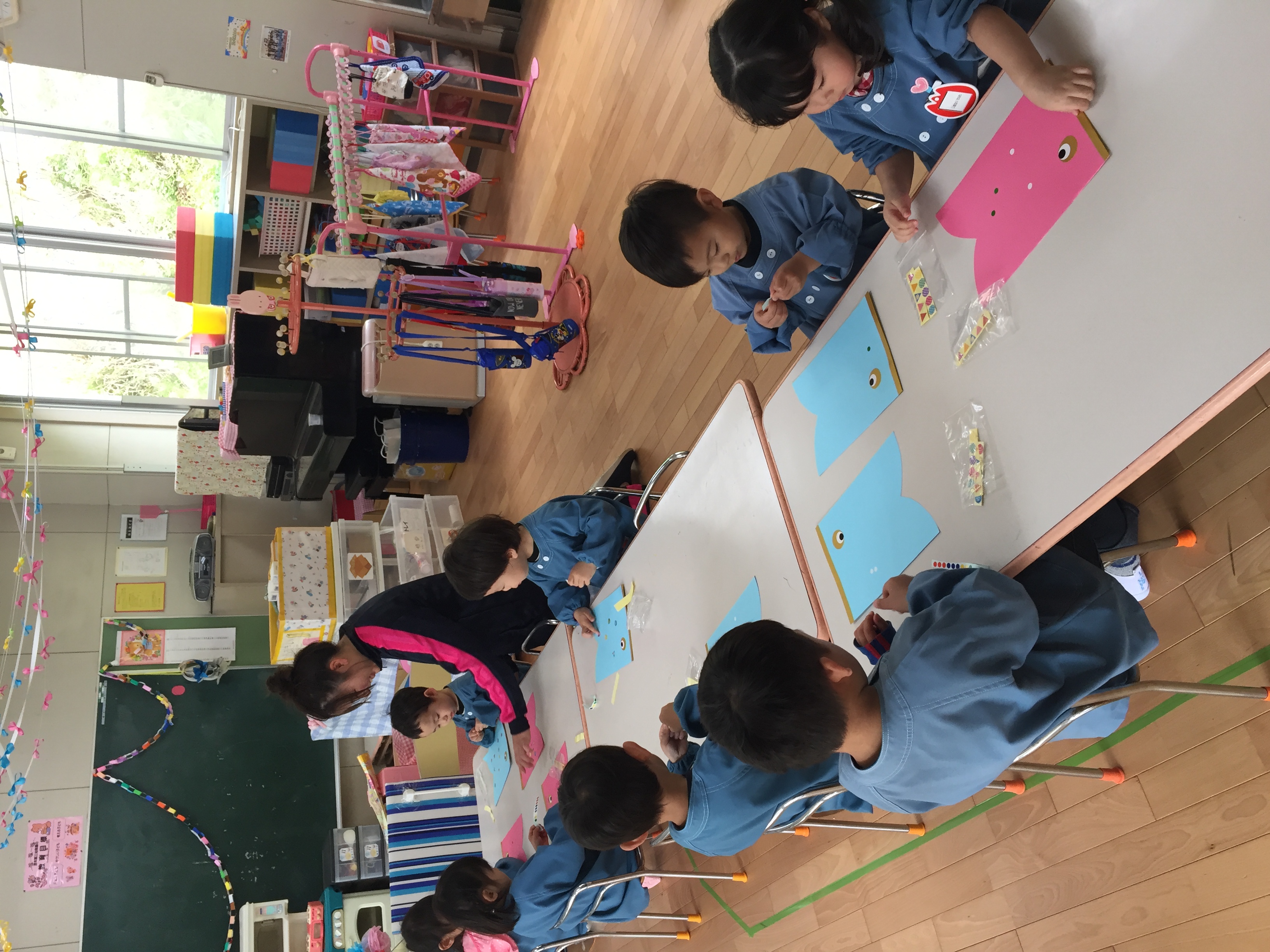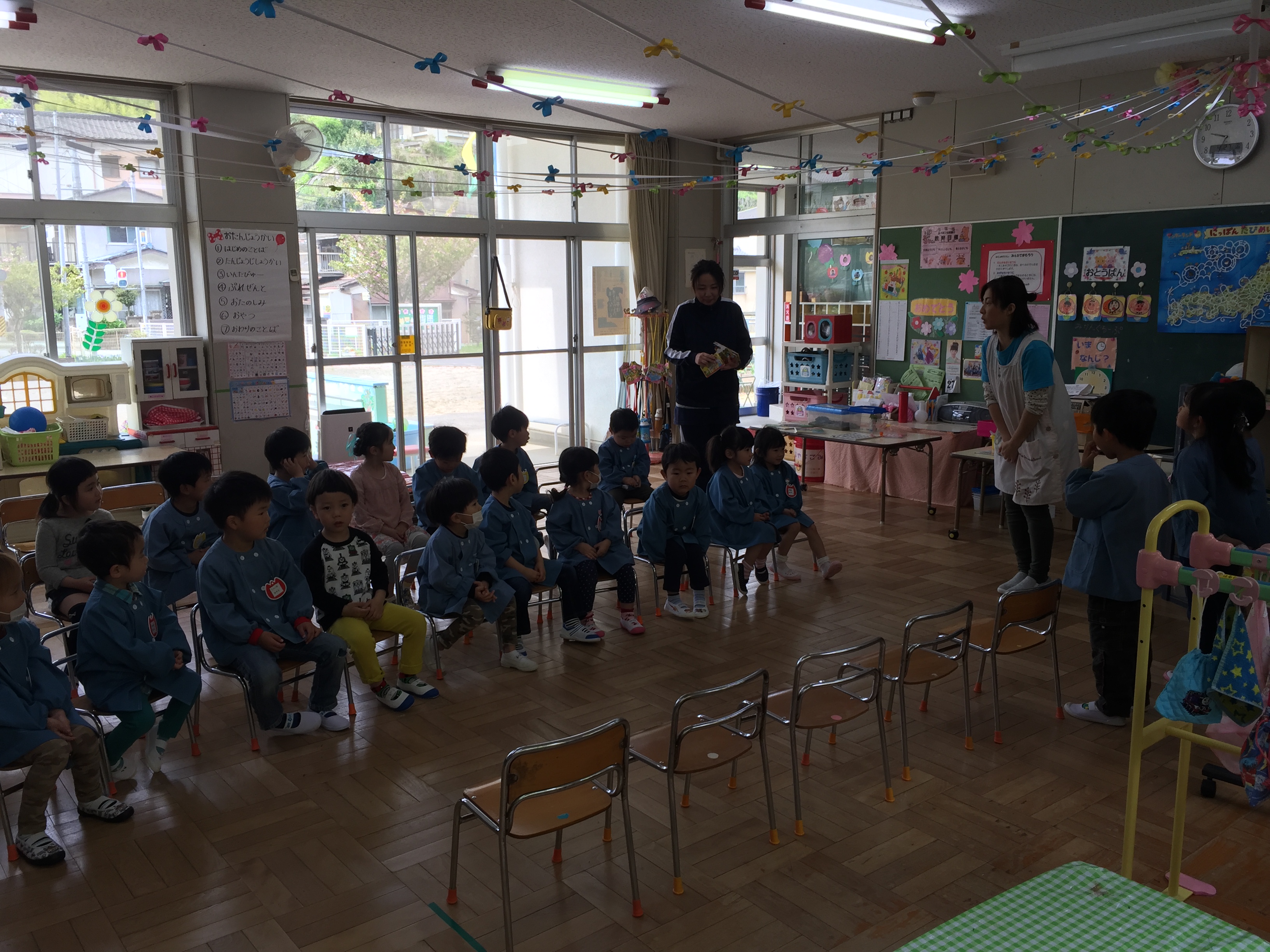 今日のお楽しみコーナーでは、みんなで手遊びをしたり、歌を歌ったりしました年少児の手本となり、大きな声で歌えていたほしぐみさんとても上手に歌えていましたね