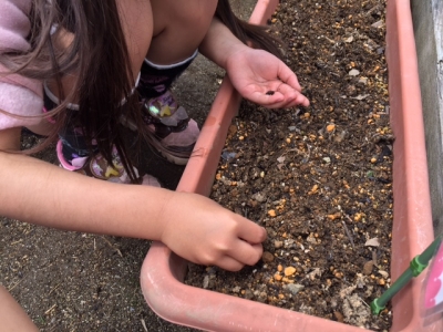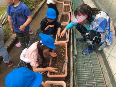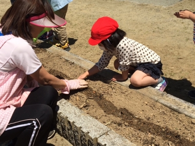 可愛い種をみんなで、丁寧にまきました。