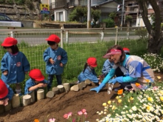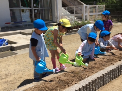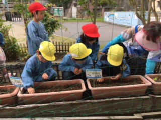 早く目が出るといいね。園庭が、かわいい黄色になる日が、今から楽しみです。