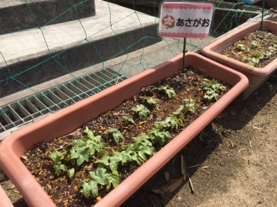 あさがおの種が芽を出していたので、さっそく植えました。