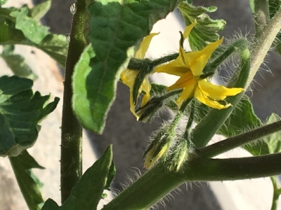 トマトも黄色くてかわいい花が咲きました。これからの成長が楽しみです。