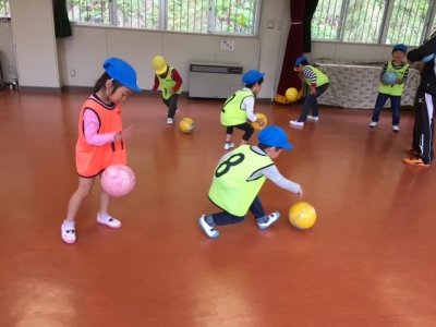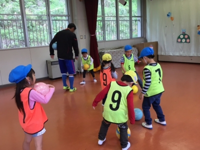 幼稚園で、年に3回、コーチの指導を受けます。