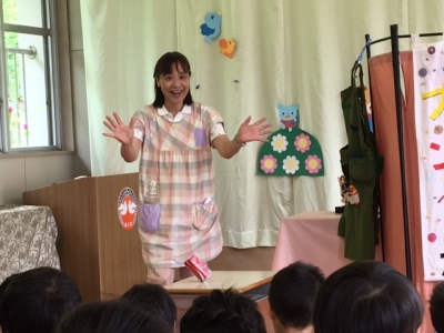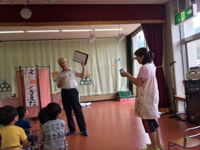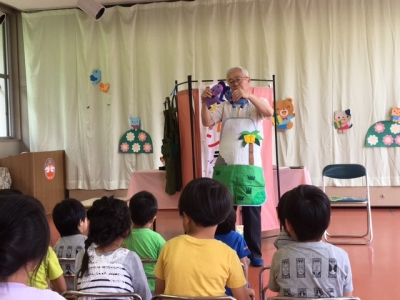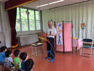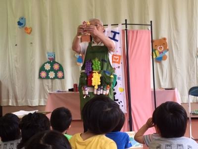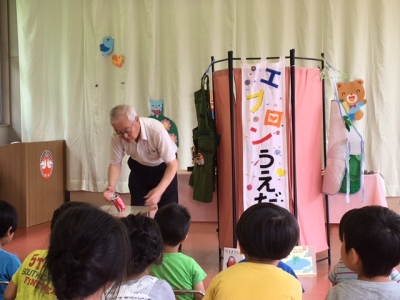 続いては、エプロンシアターです。「ぞうさんのはなはなぜ長い?」「クレヨンのお話」