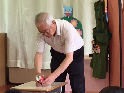 まずは、缶の魔法から(今日は、パパたちが飲んでる?ビールの缶です)