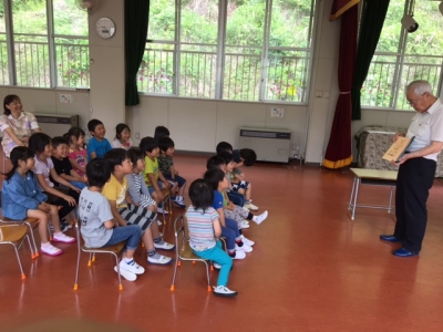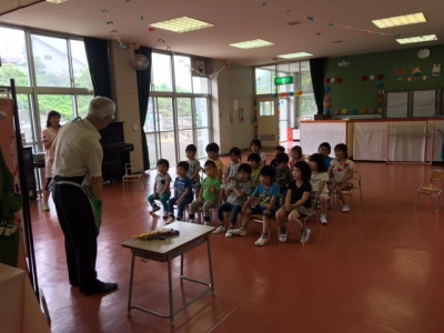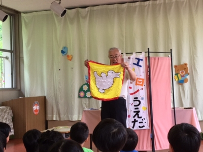 絵本の読み聞かせボランティアの「エプロン上田さん」が幼稚園に来てくださいました。