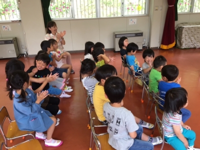 あいにくのお天気で、二階の遊戯室で行いました。