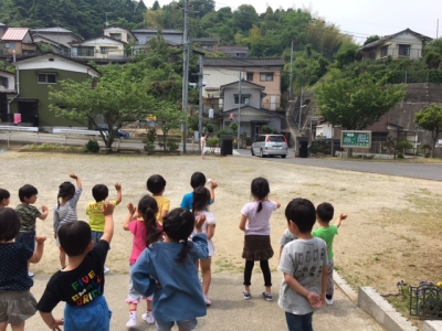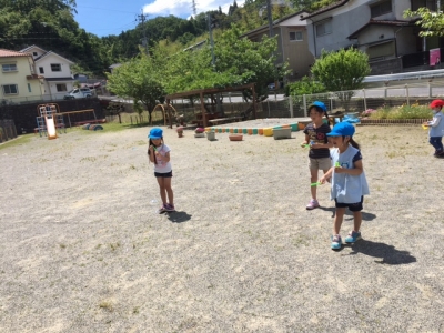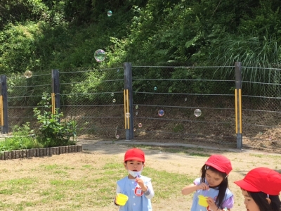 だんだん夏が近づいてきている様子です。シャボン玉遊びを楽しんでいます。