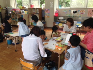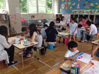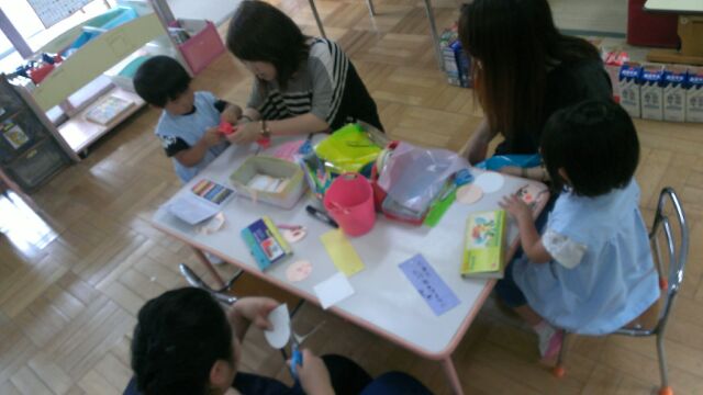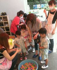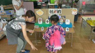 手作り鉄砲の射的はとても盛り上がり、何度も挑戦する子も(^^)エアコンが効いた涼しいお部屋で行われていたこともあり、お家の方もほっと一安心のひと時となりました☆