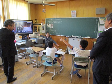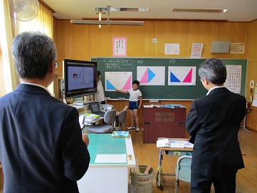 今日は、いわき教育事務所から所長さんと次長さんがいらっしゃって、子どもたちの授業の様子を見ていただきました。