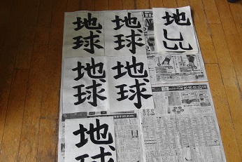 今日は、学校近くにお住いの山野先生に来ていただいて、習字の七夕展の作品作りに取り組みました。
