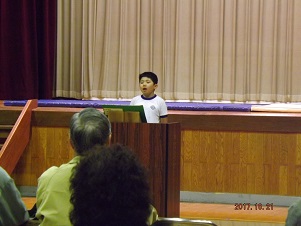今年から始めた「少年の主張」 子どもたちの発表した作文の中に、こんな言葉がありました。「ぼくたちは地域のみなさんにお世話になっている。ぼくたちが一生懸命勉強している姿を見せることが、地域のみなさんへの感謝の気持ちを伝えることになる。」