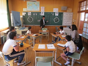今日は、いわき市教育委員会、いわき教育事務所、福島県教育委員会より4名の先生方が来校し、国語と算数の授業の様子をご参観いただきました。