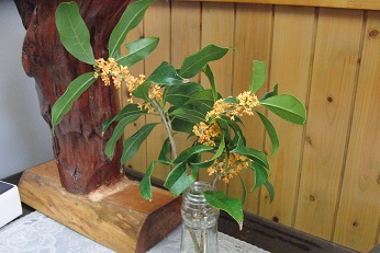 今、キンモクセイが満開で、いい香りが漂っています。校長室にも2本の枝を切って水に差しました。