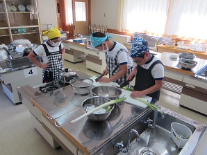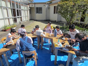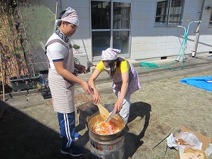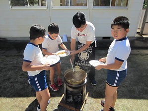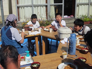 秋晴れの気持ちの良い天気に恵まれ、今日は全校生でお昼ごはんを作って食べました。