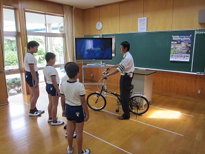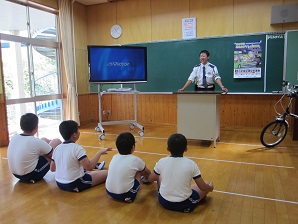 今日はいわき中央警察署の方を講師に、自転車の安全な乗り方についての交通安全教室を行いました。