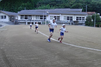 白水小学校では、登校後にみんなで朝のマラソンに取り組んでいます。