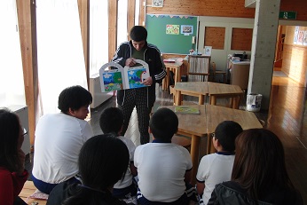 テス先生は、お昼休みに英語の本の読み聞かせをしてくださいます。