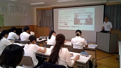 はじめに、平山明裕校長先生より「小規模校の現状と課題」についての講話をいただきました。次に、総合教育センターの小泉室長(中学校)と坂本指導主事(小学校)が、「授業参観の視点」について講義を行いました。