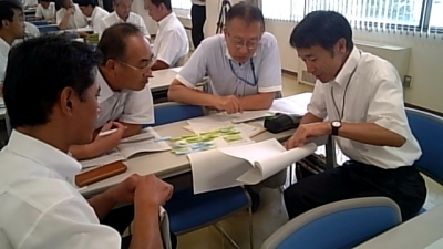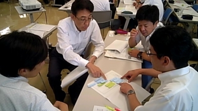 「ケースメソッド資料」をもとに、SWOT分析にむけてそれぞれの知識・経験をもとにまとめていただきました。4色の蛍光ペンで色分けをしながらまとめたり、多くの書き込みをしながらその学校の分析をしたりなど、教頭先生方のすばらしい取り組みの様子を見ることができました。個人で読み取ったことを、つぎにグループごとにSWOT分析等を行いました。グループでの協議においては、深い話し合いがされ、これをもとに最後に一人一人が「管理職が着手すべきこと」を考え、まとめる時間をとりました。我々指導主事にとっても、学びの多い研修となりました。