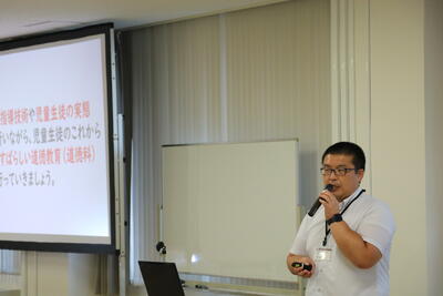 福島大学附属中学校から講師の先生をお呼びして、今までの道徳科の授業実践例を映像等を交えてわかりやすく説明していただきました。また、受講者同士で話し合う場面も多く、大変勉強になりました。