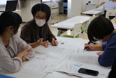 講師の宗形先生も、グループワークに積極的に関わり、校種をつなぎながらよりよくまとめられるように助言してくださいました。
