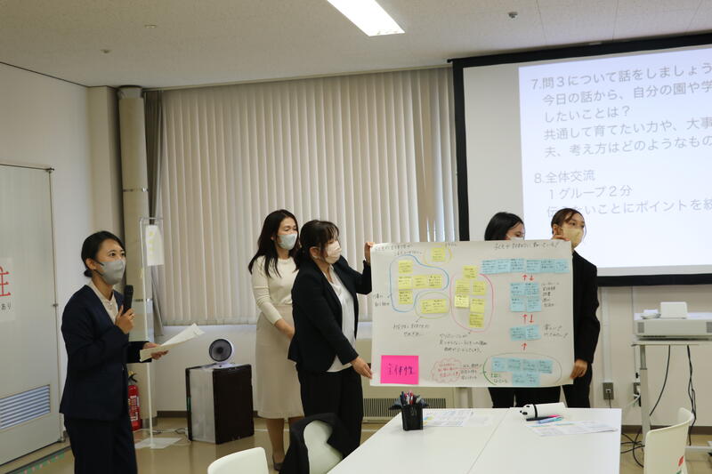 はじめに、幼児教育と学校教育に関して、相互理解を図りました。各校種の先生方同士がお互いを知り、共に子どもについて考えることの重要性について、具体的にお話いただきました。また、今、全国で進められている『幼保小の架け橋プログラム』についての理解を深めました。