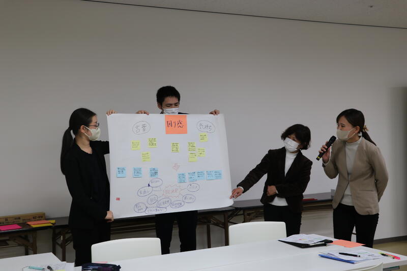 その後、意見を模造紙にまとめ、グループごとに発表していきました。