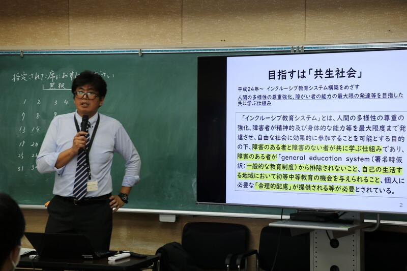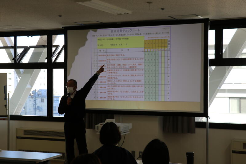 まず、教育支援室長が特別支援学級の「教育課程の全体像」「自立活動、個別の計画」「全体計画の見直し」について、講義・演習を行いました。